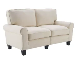 Enjoy functional style and plush, comfortable seating with the Serta Copenhagen loveseat. A great solution for smaller spaces, its compact size and easy tool-free assembly makes it an affordable and stylish seating solution for your apartment, condo or office. Soft rounded arms and pillowy back cushions bring traditional style to your living room, den or game room. Quality hardwood materials deliver strength and stability you can count on, while individually wrapped coils surrounded by high-density foam and poly-fibers provide comfortable seating you can sit back into.