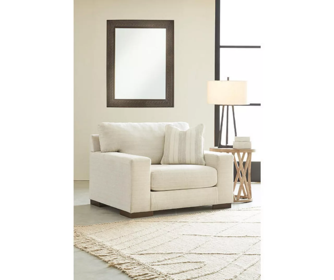 Classic comfort gets a mod twist with this oversized chair. Its minimalistic approach and structured silhouette bring a clean-lined design element to your living room. Sink into the positively plush cushions while relaxing solo, or curl up with a glass of wine while hosting guests. And with light neutral upholstery that suits both casual and contemporary spaces, this chair offers endless style possibilities.